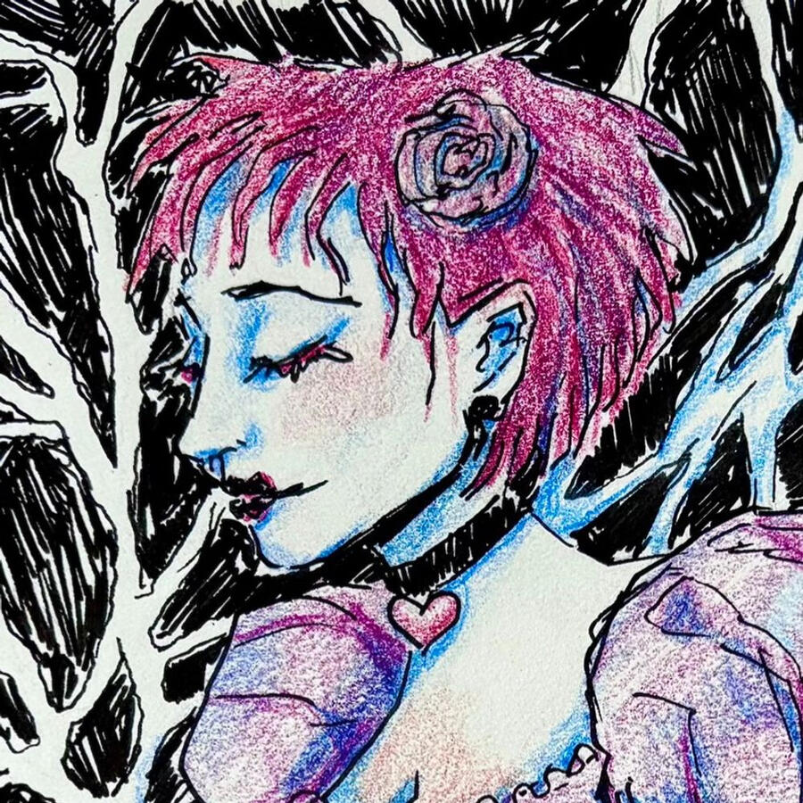 I'm a self-taught artist who creates expressive illustrations set in a dark and dreamy world. I use ink, color pencil, watercolor, and sometimes digital tools to create surreal images inspired by memories, dreams, and hidden emotions, and which are often embodied by characters who are not human.I currently have an online shop open where you can purchase prints of my work, or you can send me tip if you'd like to simply support my studio.Originals and commissions will soon be for sale, as well as events where you can purchase from me directly. Check here for updates or follow me on my socials.Thank you for your support. Stay strange and stay dreaming 🖤
